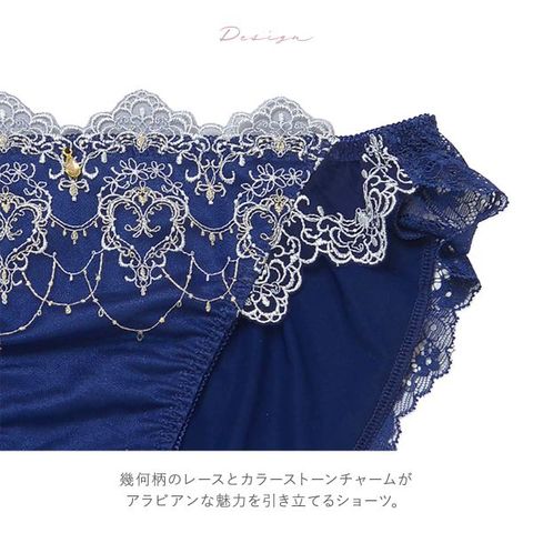 幾何柄のレースとカラーストーンチャームがアラビアンな魅力を引き立てるショーツ。