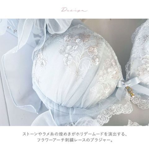 ストーンやラメ糸の煌めきがホリデームードを演出する、フラワーアーチ刺繍レースのブラジャー。