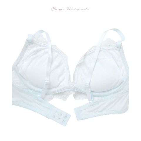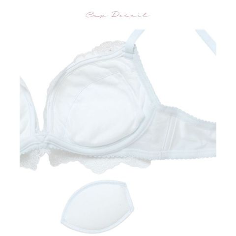 カップパターンは、丸みの綺麗なシルエットを演出するモールドカップを使用。カップ底に厚みを持たせた内蔵パッドと、取り外し可能なパッドのダブル効果で、バストを自然にボリュームアップさせてくれます。前中心は浅めで、ワイヤーの圧迫感が少ないのも嬉しいポイント。