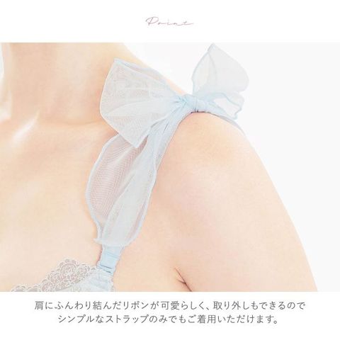 肩にふんわり結んだリボンが可愛らしく、取り外しもできるのでシンプルなストラップのみでもご着用いただけます。