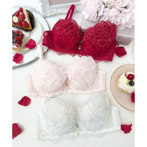 ふんわり重なり合うローズアップリケがロマンティックな、華やかでシーズンムード高まるブラジャー。ラグジュアリーながらも、フェミニンな透明感も演出してくれます。