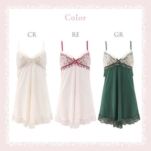 | 仕 様 | ・透感:レース部にあり ・カップなし ・肩紐調節:可能 ・スリット:あり ※生地の使用部分により、柄の出方が異なる場合がございます。予めご了承ください。 |