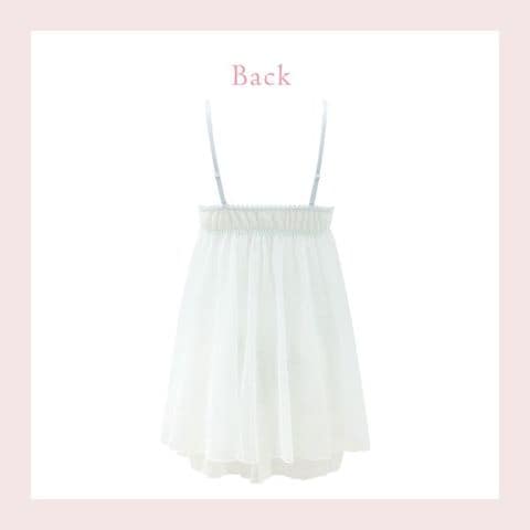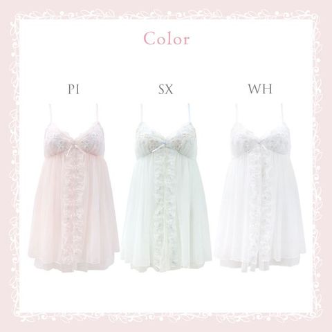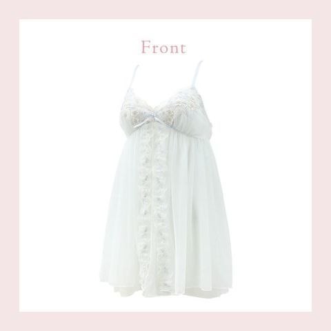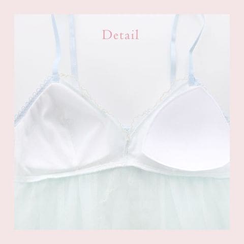 レース使いが可愛らしいキャミソール。ストラップはアジャスターつきで長さの調節ができます。身生地は透け感を楽しめるソフトチュール素材。長さの異なるチュールを2枚重ね、女の子らしいふんわりフレアシルエットに。さらりとした気持ちの良い着心地です。