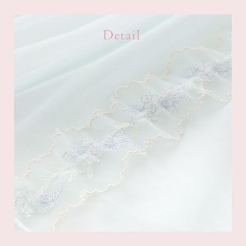 クレマチスの可憐な花々をモチーフに表現した、リサマリ「フリート」コレクション。ギャザーたっぷりの軽やかなチュールレースがキュートな印象です。大輪のクレマチスは、パッカー手法でふっくらと立体的に咲かせ、キラキラとしたラメ糸でさりげなくきらめく上品なデザインに。