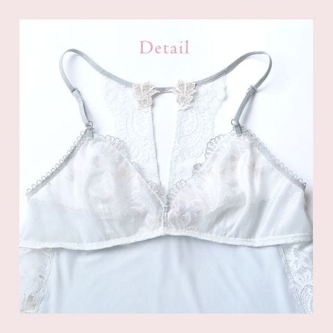 | 仕 様 | ・透感:レース部にあり ・カップなし ・肩紐調節:可能 ・スリット:なし ※生地の使用部分により、柄の出方が異なる場合がございます。予めご了承ください。 |