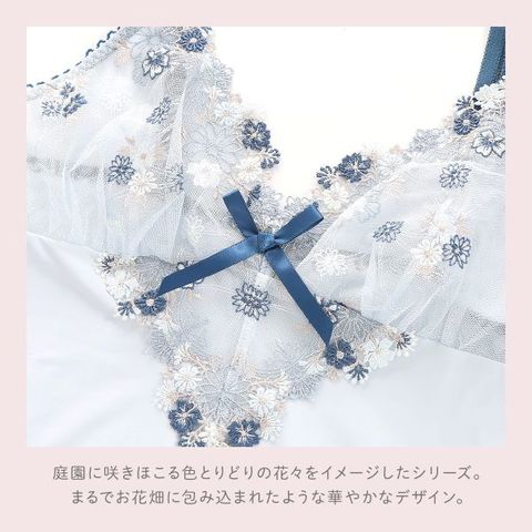すべりがよい素材を使用した、さらりとした気持ちの良い着心地のスリップ。カップ下にはVカットレースを、サイドにはスリットと小花のアップリケを添えて、華やかさを後押しします。バックスタイルには細幅レースとリボンをあしらいました。ストラップはアジャスターつきで長さの調節ができます。