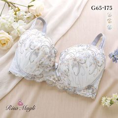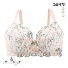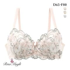 咲きほこる二輪草をイメージしたお花と、ツタを表現した曲線をふんだんにあしらった「アイシャ」コレクション。二輪草はあたたかみのあるウーリー糸で刺繍して、やわらかく可愛らしい表情をプラス。対照的に色とりどりの曲線は太めのステッチやラメ糸、ドット柄をほどこすことで、ひときわ華やかな印象に。まるで二輪草が光に照らされているかのような、きらめきが幾重にも折り重なる、幻想的な世界観を表現しています。