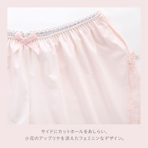 裾に繊細なレースをあしらったフェミニンなデザインのタップパンツ。ウエストはゴムでラクチンです。身生地はすべりがよい素材を使用しており、さらりとした気持ちの良い着心地です。伸縮性に優れているので、着用していてストレスを感じにくい仕様になっています。