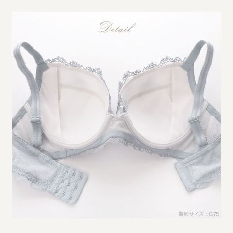 前中心が低いワイヤーとカップのサイドパネルで、バストを中央に寄せて美しいV字を演出する、V Make Typeです。グラマーブラは、カップサイドのパネルで脇流れを防ぎしっかり固定。また、カップ中央部分にボーンを入れることにより、バストをしっかり支えます。パッドポケット付きなので、お手持ちのパッドでボリュームを調整できます。ホックは3段3列なので安定感があります。