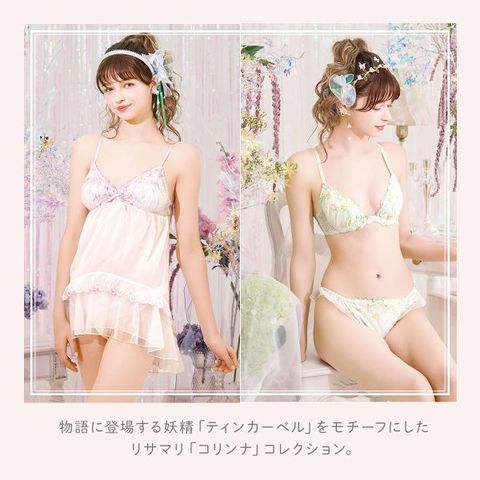 物語に登場する妖精「ティンカーベル」をモチーフにした「コリンナ」コレクション。くるくると曲線を描く羽で、ティンカーベルが軽やかに舞う様子を表現しています。色とりどりのオーロラ糸やマルチ糸を織り交ぜることで、妖精の光の粒子が放つ、夢のような輝きを演出。身に着けるだけでときめきの魔法をかけられるような、光の角度によって表情を変える繊細なきらめきのレースがロマンティック。