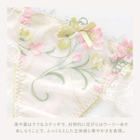 | 仕 様 | ・伸縮性:バックは縦横あり ・クロッチ:付き ・透感:レース部にあり ※生地の使用部分により、柄の出方が異なる場合がございます。予めご了承ください。 |