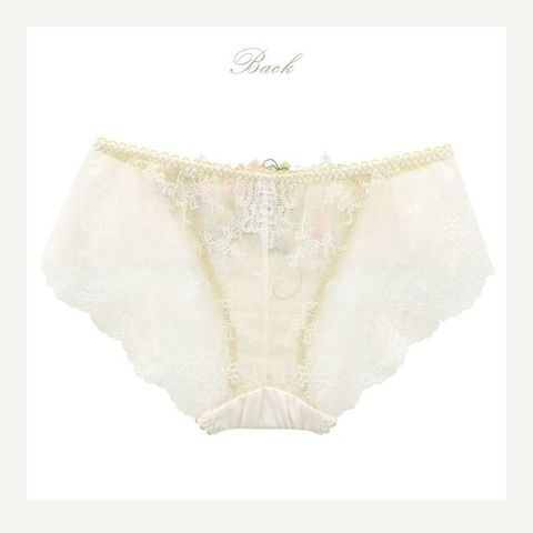 バック全体にレースをあしらったレースショーツ。繊細なレースを使用し、美しい透け感。伸縮性があるのでほどよくヒップにフィットします。ボトムスへもショーツラインが響きません。通気性がよく、快適にご着用いただけます。