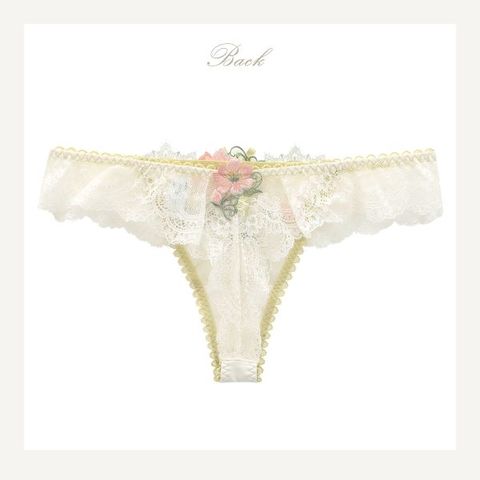 ウエストからバック部分にかけて総レース仕様のTバックショーツ。バック中心にはフラワーアップリケを付けてフェミニンな印象です。ショーツのラインが気にならないためボトムスの種類を問わず幅広くご着用いただけます。