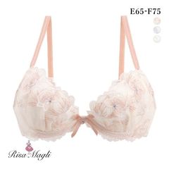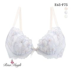 ひらりと舞う花びらをイメージした「ナーラ」コレクション。ラフなタッチで刺しゅうされた花々が重なり合うレースは、あえて正面ではなく横向きのお花をモチーフにして、動きのある印象の中にも上品さを感じられるデザインに。その上から輝くラインストーンをあしらったシアーアップリケを重ねることで、軽やかで涼しげな印象に仕上がりました。