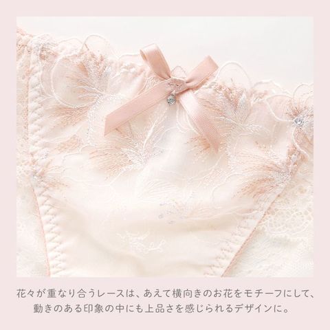 | 仕 様 | ・伸縮性:バックのみ縦横にあり ・クロッチ:付き ・透感:レース部にあり ※生地の使用部分により、柄の出方が異なる場合がございます。予めご了承ください。 |