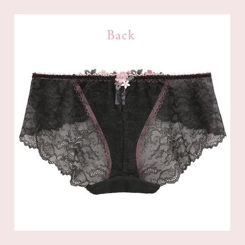 バック全体にレースをあしらったレースショーツ。繊細なレースを使用し、美しい透け感。伸縮性があるのでほどよくヒップにフィットします。通気性がよく、快適にご着用いただけます。