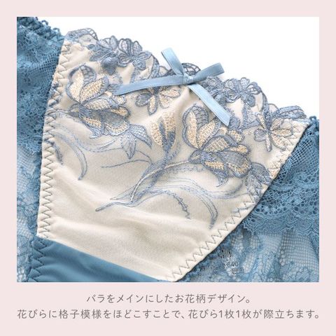 バック全体にレースをあしらったレースショーツ。繊細なレースを使用し、美しい透け感。伸縮性があるのでほどよくヒップにフィットします。通気性がよく、快適にご着用いただけます。