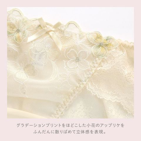 色とりどりのお花のアップリケを散りばめた可憐なデザインがロマンティックなレトロさを演出する、リサマリ「マティア」コレクション。グラデーションプリントをほどこした小花のアップリケをふんだんに散りばめて立体感を表現することで、お花畑をぎゅっと詰め込んだような華やかな印象に仕上がりました。