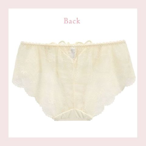 バック全体にレースをあしらったレースショーツ。繊細なレースを使用し、美しい透け感。伸縮性があるのでほどよくヒップにフィットします。ボトムスへもショーツラインが響きません。通気性がよく、快適に着用いただけます。