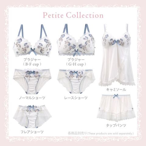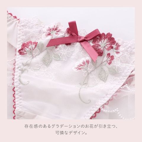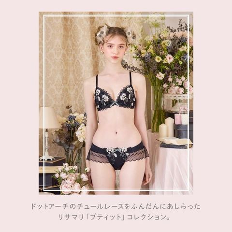 ドットアーチのチュールレースをふんだんにあしらった可愛らしいデザインがポイントの「プティット」コレクション。存在感のあるグラデーションのお花が引き立つ、可憐なシリーズです。