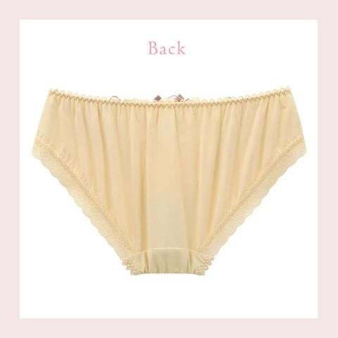 バックの身生地は、肌あたりなめらかな素材です。縦横にストレッチ性があり、ヒップにフィットします。バック足口はレース付きで後ろ姿も華やかに。