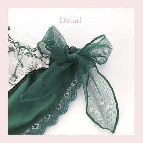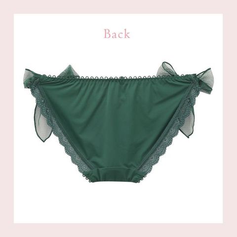 両サイドにはゴムが付いているため、リボンがほどけてもショーツが脱げてしまう心配はありません。バックの身生地は縦横にストレッチ性があり、なめらかな肌ざわりではき心地がいいです。足口はレース付きで華やかに。