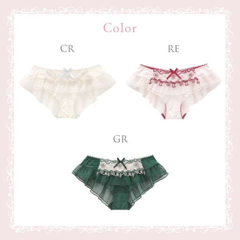 ふわりとレースが広がる、女の子らしいフレアなシルエットのショーツ。ウエストとフレアのメリハリでスタイルUP効果も。足のつけ根の締め付け感がなく、ラクなはき心地です。スカートやワイドパンツ等と合わせて着用いただくのがおススメです。