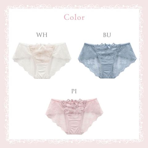 バック全体にレースをあしらったレースショーツ。繊細なレースを使用し、美しい透け感。伸縮性があるのでほどよくヒップにフィットします。