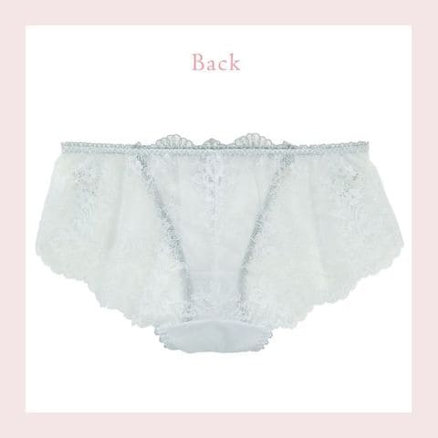 バック全体にレースをあしらったレースショーツ。繊細なレースを使用し、美しい透け感。伸縮性があるのでほどよくヒップにフィットします。通気性がよく、快適にご着用いただけます。