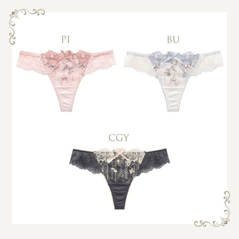 サイドからバックはレースデザインでセクシーな印象のTバックショーツ。フロント&バックにはサテンリボンを付けています。ショーツのラインが気にならないためボトムスの種類を問わず幅広くご着用いただけます。