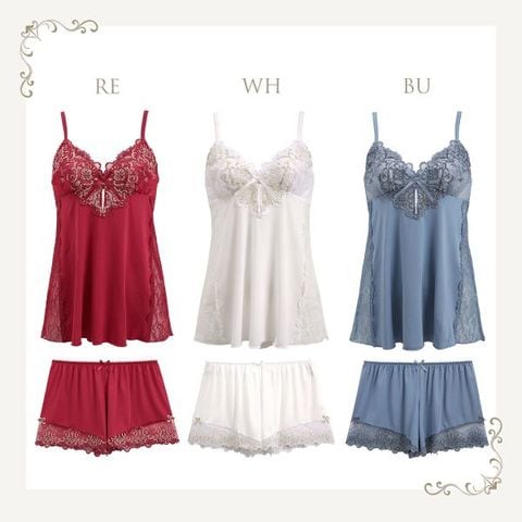 | 仕 様 | 【キャミソール】 ・透感:レース部にあり ・肩紐調節:可能 ・カップなし ・スリット:なし 【タップパンツ】 ・透感:レース部にあり ・ウエストゴム ※生地の使用部分により、柄の出方が異なる場合がございます。予めご了承ください。 |