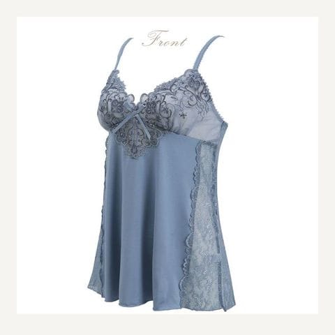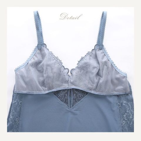 キャミソールの両サイドは透けるレースではラグジュアリーなデザインに。バックにはアップリケをあしらい華やかさをプラスしています。