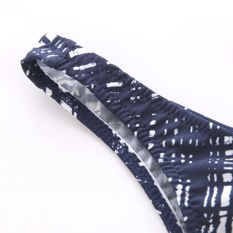 パンキッシュなランダムチェックを、ネイビーカラーで仕上げた、大人のビキニショーツ。フロントシームなし(股下は接ぎあり)のユニセックスなはきごこちです。