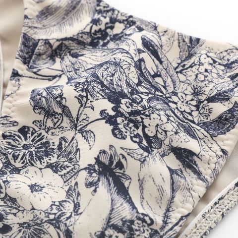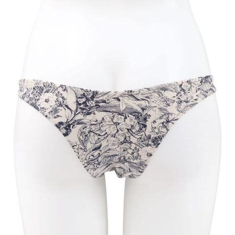 ヴィンテージの雰囲気を漂わせたボタニカルプリントのビキニショーツ。身生地は程よい厚みで伸びやか。すべすべなめらかなストレッチ素材を使用し、軽い肌あたりでフィット感が心地よい生地です。