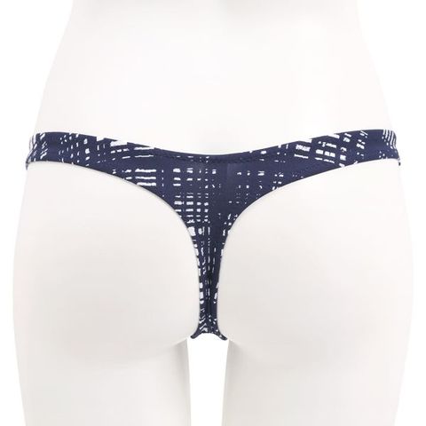 パンキッシュなランダムチェックを、ネイビーカラーで仕上げた大人のTバックショーツ。フロントシームなし(股下は接ぎあり)のユニセックスなはきごこちです。