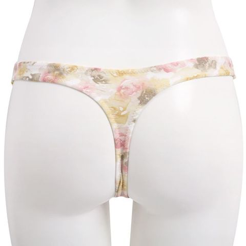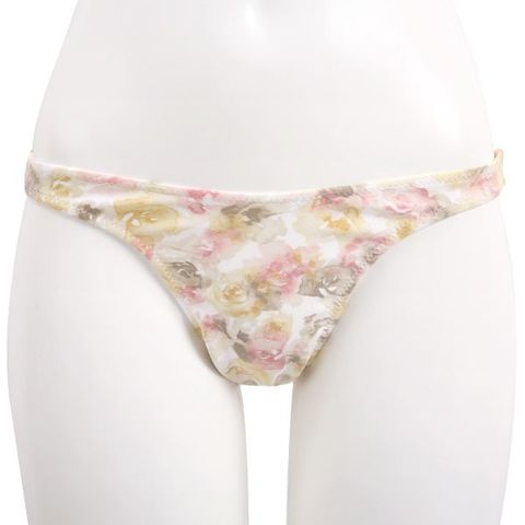 甘い香りが今にも漂ってきそうなローズをパステルカラーで描いたTバックショーツ。身生地は程よい厚みで伸びやか。すべすべなめらかなストレッチ素材を使用し、軽い肌あたりでフィット感が心地よい生地です。