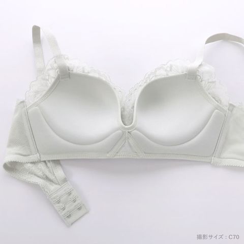 樹脂でしっかり支える「低反発パット」使用。もちふわで心地よいパッドでとっても楽にボリュームアップ。サイドの脇高構造によりすっきりしたボディのシルエットと美しいバストラインを演出します。前中心低めで、カシュクール型になっています。