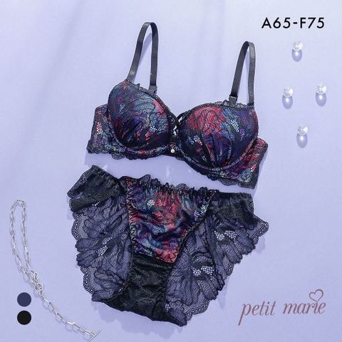 プチマリー プリントクロスコード ブラセット ABCDEF ブラジャー ショーツ セット 総レース バックレース petit marie BLACK