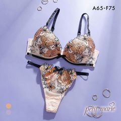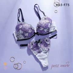プチマリー ローズ刺繍 ブラセット ABCDEF ブラジャー ショーツ セット ノーマルショーツ 谷間 盛りブラ petit marie BLACK