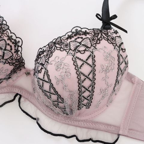 ひらりと揺れるリボンをイメージした刺繍をあしらって、あざとかわいい世界観をぎゅっと詰め込んだブラ&ショーツセットです。