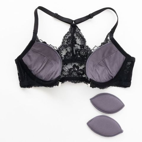 ブラジャーのカップ裏は下厚の内蔵パッドと取り外し可能なふわふわレモンパッド入りで、盛り感のあるバストをメイクする盛りブラ仕様☆