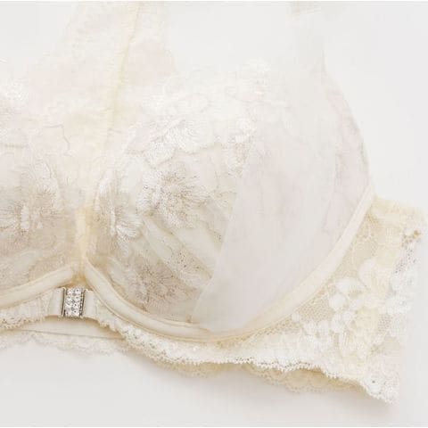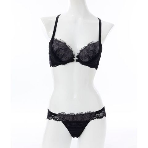| 仕 様 | ブラ ・フロントホック ・3/4カップ ・下厚内蔵パッドと取外し可能なパッドのWパッド仕様 ・肩紐取外し:不可 ・L字ワイヤー入り ・サイドボーン:あり ・脇高 ショーツ ・バックは2wayに伸縮性あり ・クロッチ:付き ・透感:レース部分にあり |