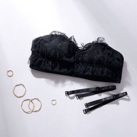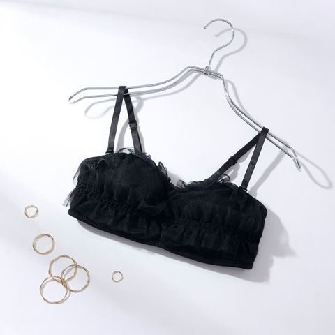 アウターライクなフリルチュールをフロントにあしらった、バンドゥタイプのノンワイヤーブラジャーです。