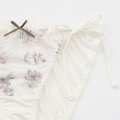 花柄プリントと刺繍レースが甘くて儚い雰囲気のサイドリボンショーツ。