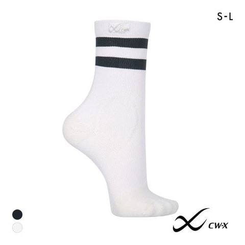CW-X独自のテーピング原理で、足首と足裏のアーチをサポートし、運動時の足の疲労を軽減。CW-Xのプレーンソックス クルータイプ。