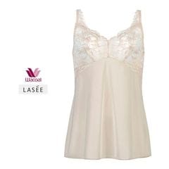 しめつけを感じやすいアンダーバスト部分は綿混高伸度ゴムで肌に優しい着け心地。バックはフリーなカッティング素材で圧迫感が少なく、アウターにひびきにくく、段差を軽減します。