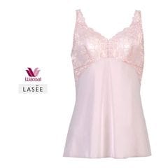 グラデーションの美しい空の色を表現したストレッチラッセルレースは、バラとピカケの小花をアクセントにきかせ、大人の愛らしさと上品さを表現。