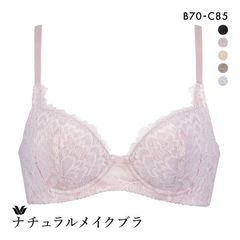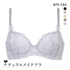 カップ肌側は綿混素材で優しい肌あたり。多くの方に合わせやすく、脇はスッキリとした自然なまるみのあるバストシルエットを演出します。NEWピタッとパッド入りで、ふっくらバストをメイク。