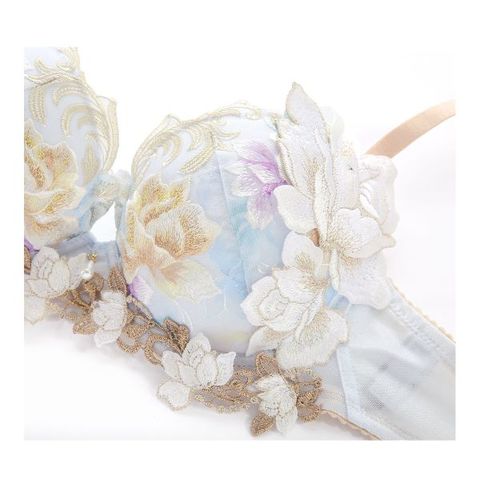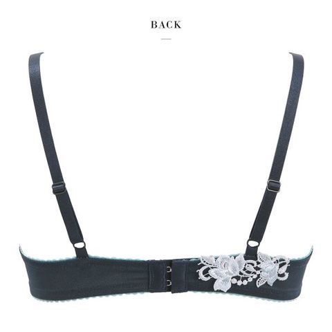 カップ肌側はなめらかな肌触りで、バストを優しく包み込むような着装感。バックにもアップリケをあしらい、後ろ姿も華やか。