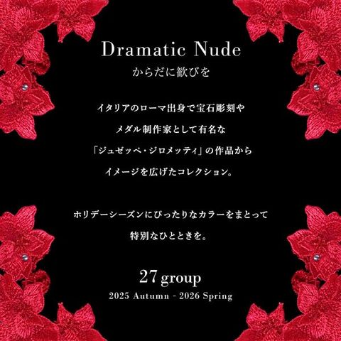 イタリアのローマ出身で宝石彫刻やメダル制作家として有名な「ジュゼッペ・ジロメッティ」の作品からイメージを広げたコレクション。ホリデーシーズンにぴったりなカラーをまとって特別なひとときを。